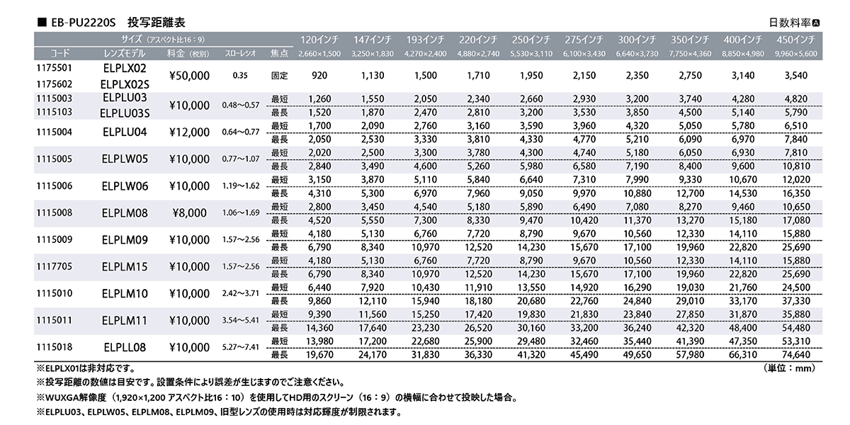 EB-L1000Uシリーズ用交換レンズ | ELPLU03S